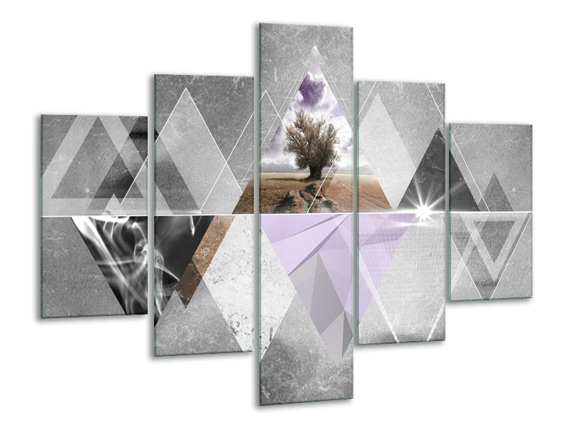 Glasschilderij Boom, Abstract | Grijs, Paars, Bruin | 100x70cm 5Luik