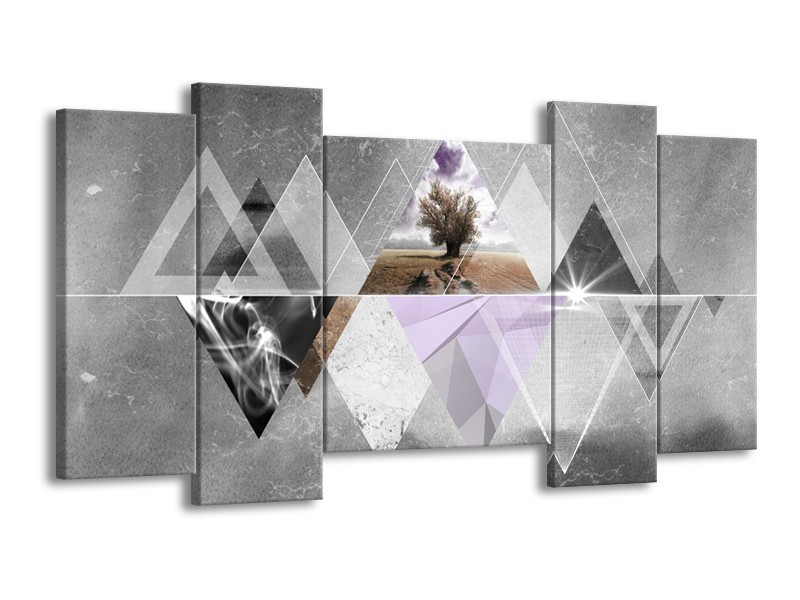 Glasschilderij Boom, Abstract | Grijs, Paars, Bruin | 120x65cm 5Luik