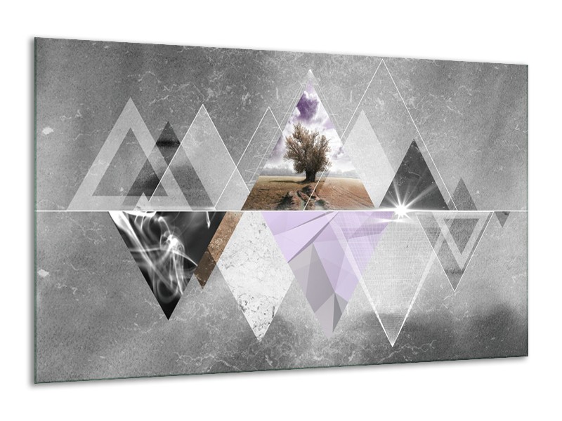 Glasschilderij Boom, Abstract | Grijs, Paars, Bruin | 120x70cm 1Luik