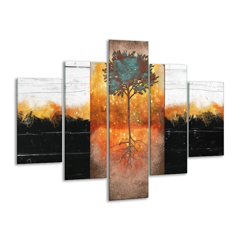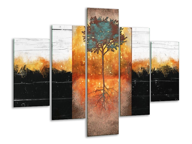 Glasschilderij Boom | Oranje, Zwart, Wit | 100x70cm 5Luik