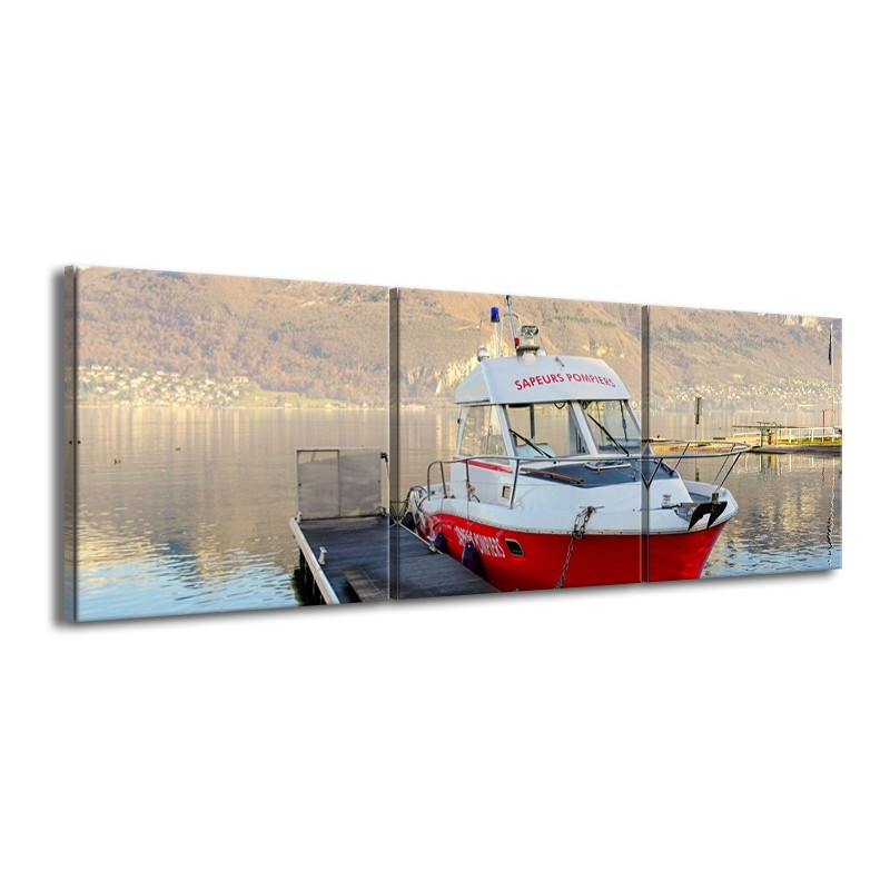 Glasschilderij Boot, Bergen | Rood, Grijs, Wit | 150x50cm 3Luik