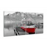 Glasschilderij Boot, Bergen | Zwart, Wit, Rood | 160x80cm 4Luik