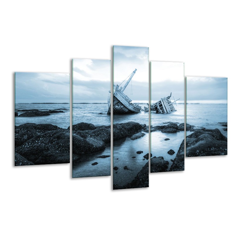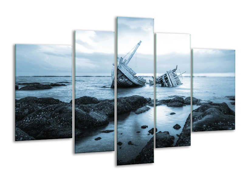 Glasschilderij Boot | Blauw, Grijs | 170x100cm 5Luik