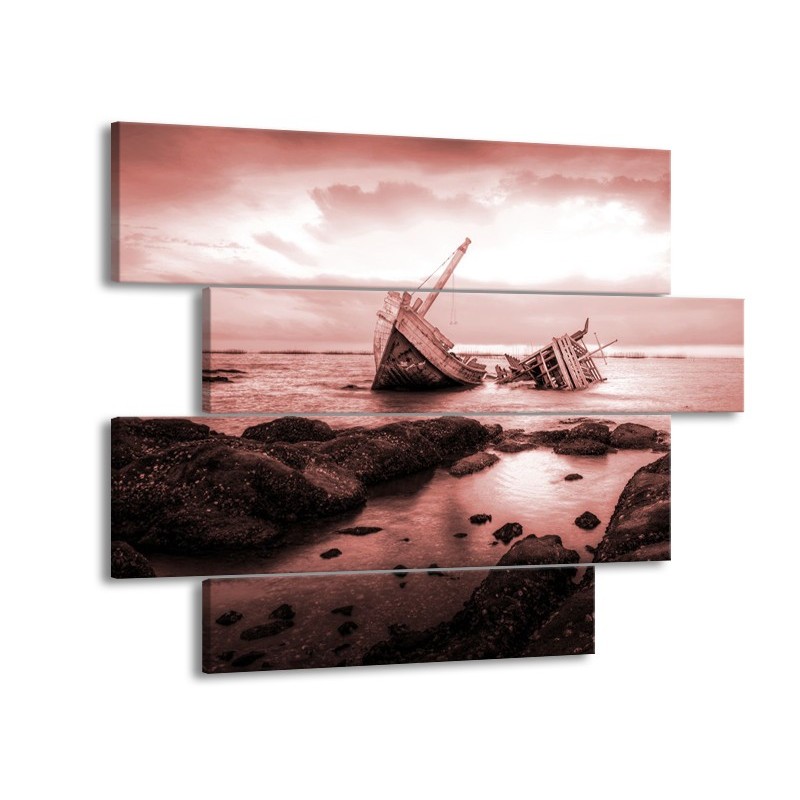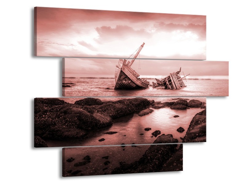Glasschilderij Boot | Bruin, Rood | 115x85cm 4Luik