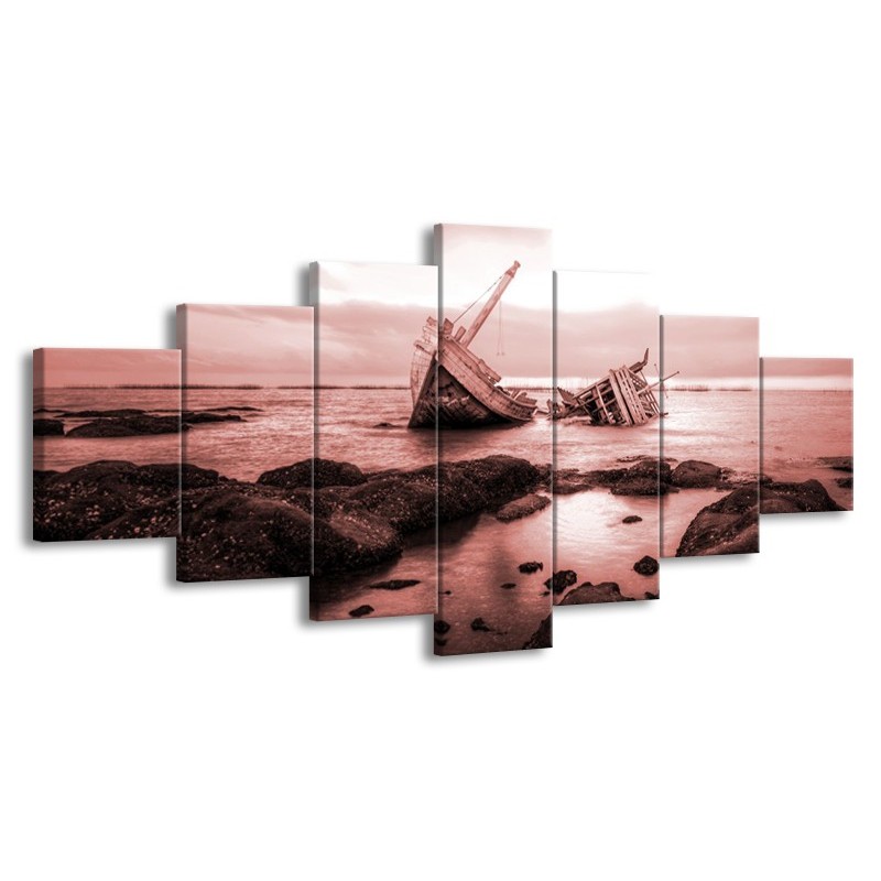 Glasschilderij Boot | Bruin, Rood | 210x100cm 7Luik