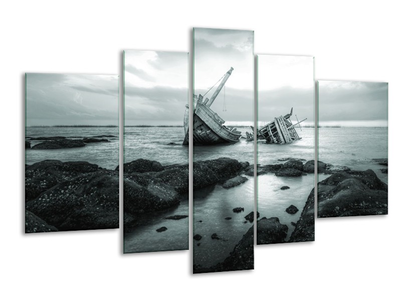 Glasschilderij Boot | Grijs, Groen | 170x100cm 5Luik