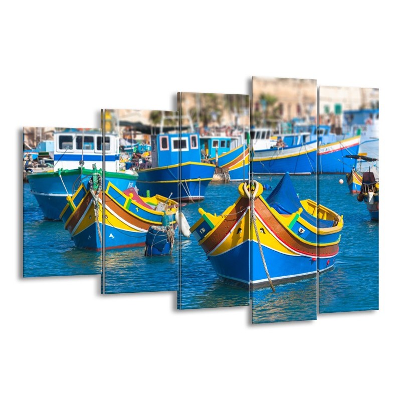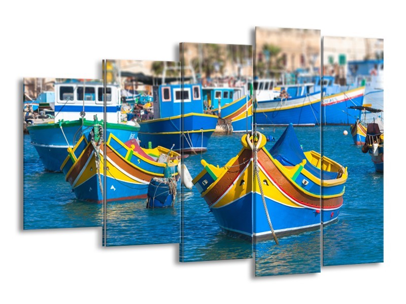 Glasschilderij Boot, Natuur | Blauw, Geel, Oranje | 150x100cm 5Luik