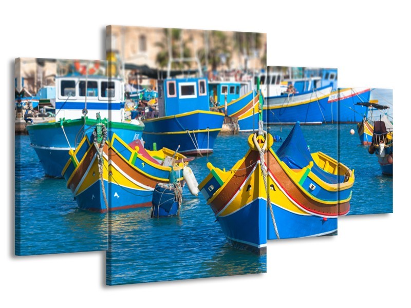 Glasschilderij Boot, Natuur | Blauw, Geel, Oranje | 160x90cm 4Luik