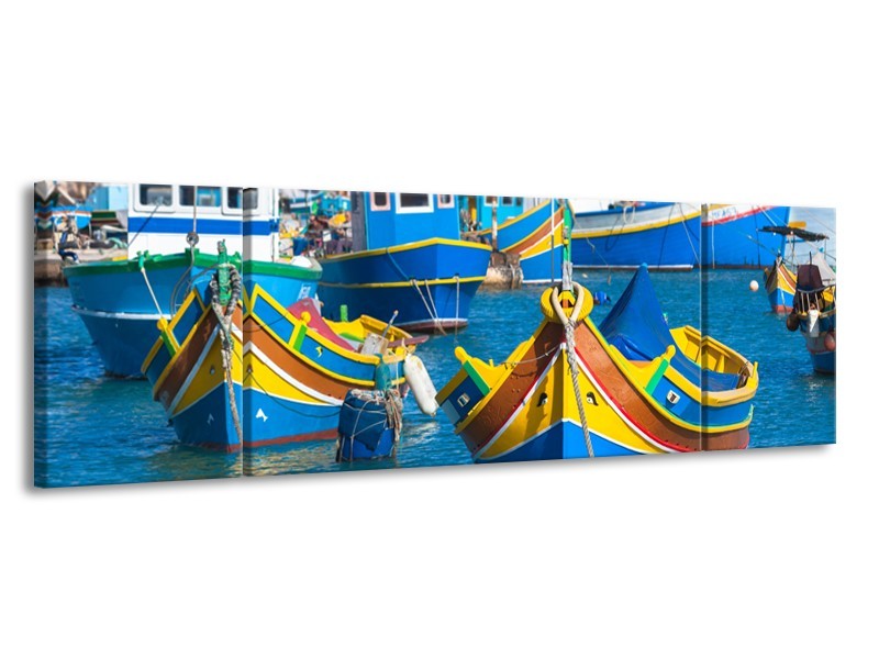 Glasschilderij Boot, Natuur | Blauw, Geel, Oranje | 170x50cm 3Luik