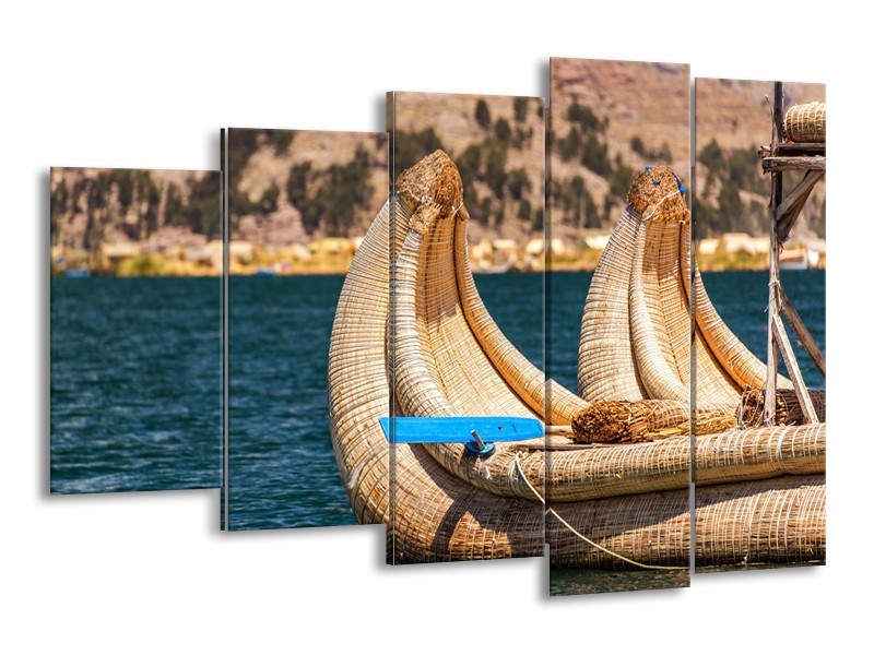 Glasschilderij Boot, Natuur | Geel, Bruin, Blauw | 150x100cm 5Luik
