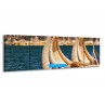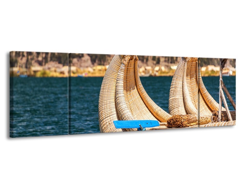 Glasschilderij Boot, Natuur | Geel, Bruin, Blauw | 170x50cm 3Luik