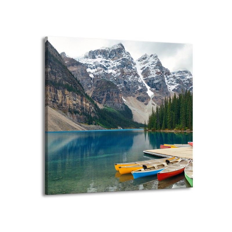 Glasschilderij Boot, Natuur | Grijs, Blauw, Groen | 70x70cm 1Luik