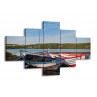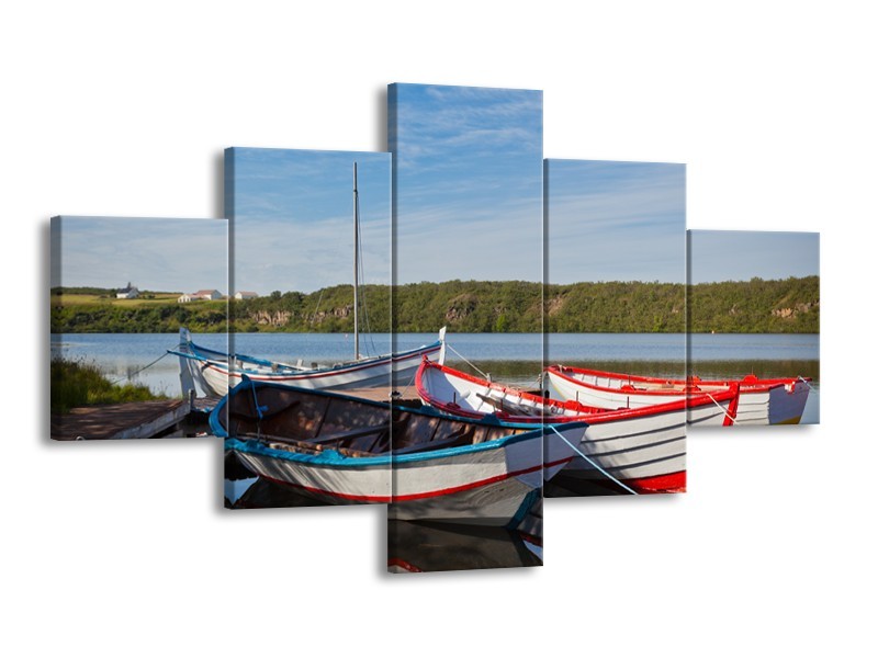 Glasschilderij Boot, Natuur | Grijs, Rood, Blauw | 125x70cm 5Luik
