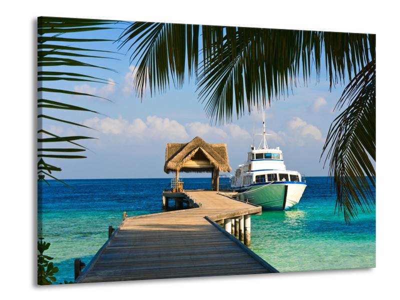 Glasschilderij Boot, Natuur | Groen, Blauw, Turquoise | 100x70cm 1Luik