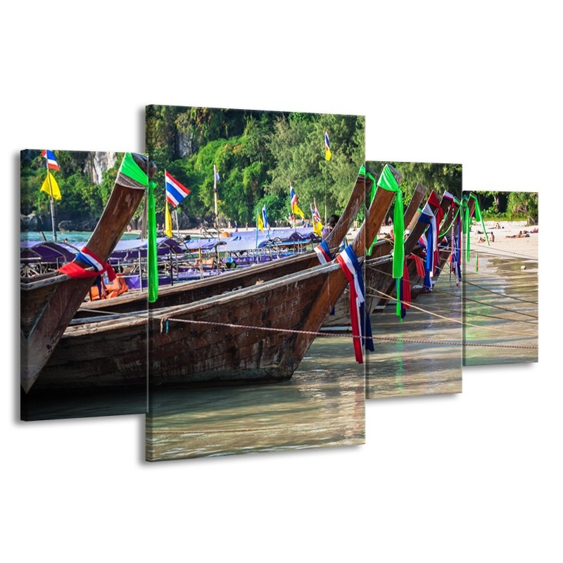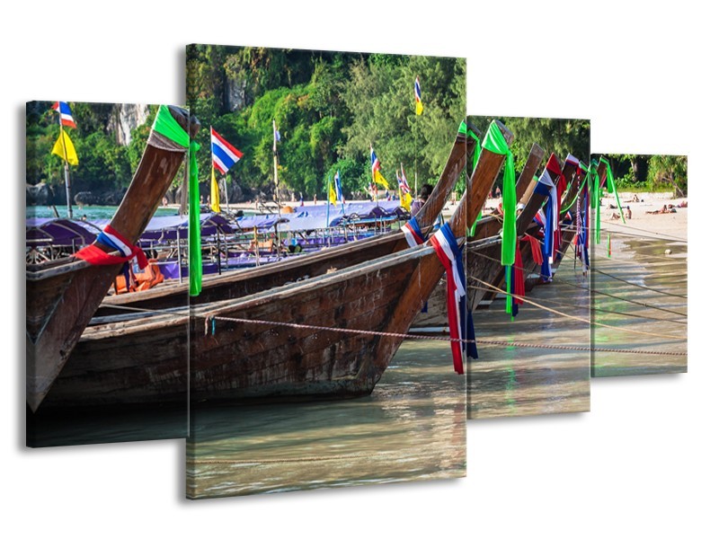 Glasschilderij Boot, Natuur | Groen, Bruin, Gijs | 160x90cm 4Luik