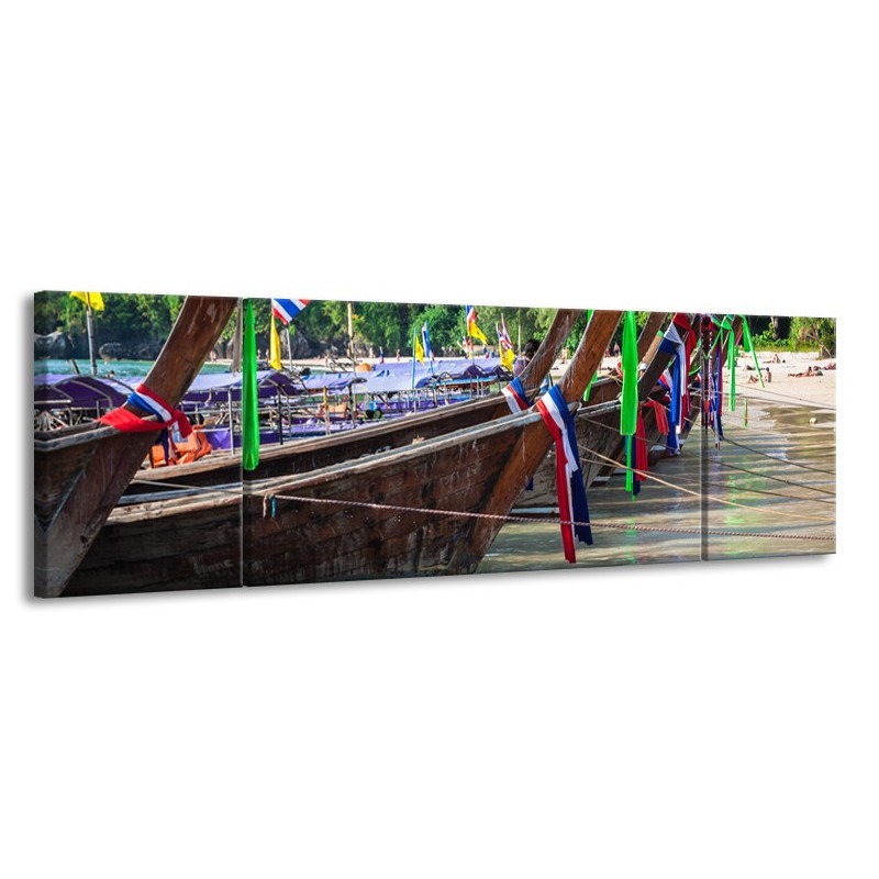 Glasschilderij Boot, Natuur | Groen, Bruin, Gijs | 170x50cm 3Luik