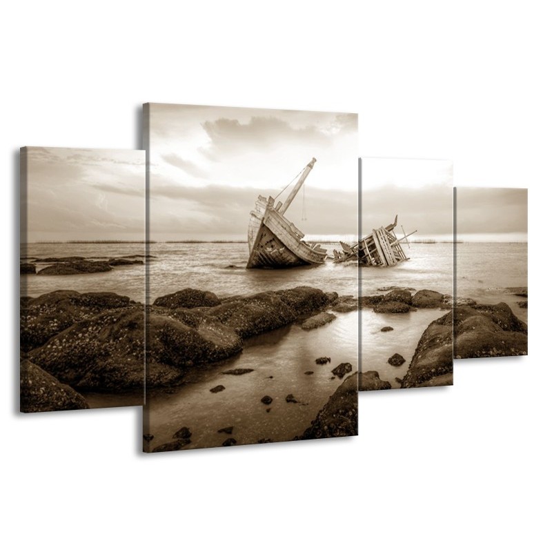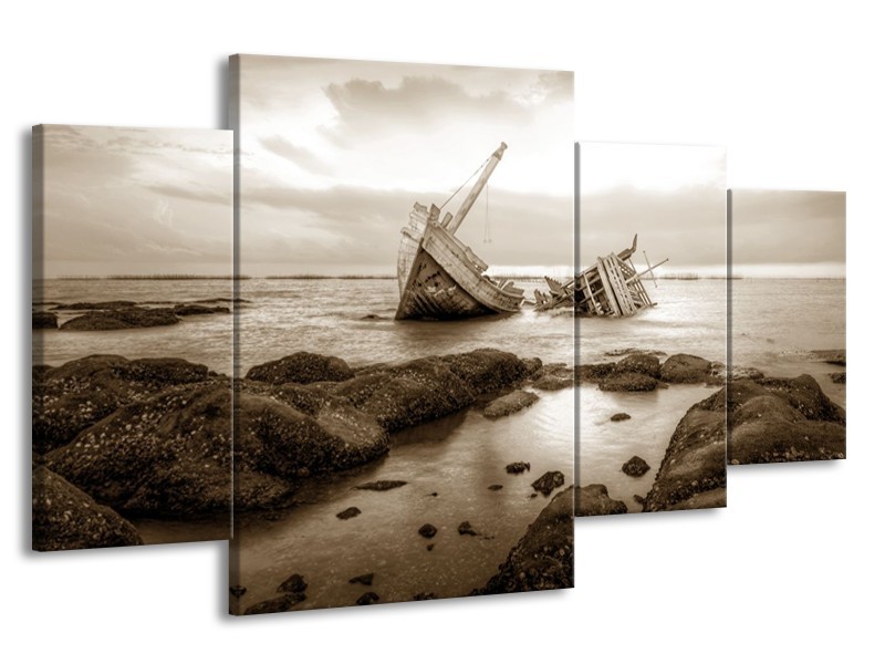 Glasschilderij Boot | Sepia | 160x90cm 4Luik