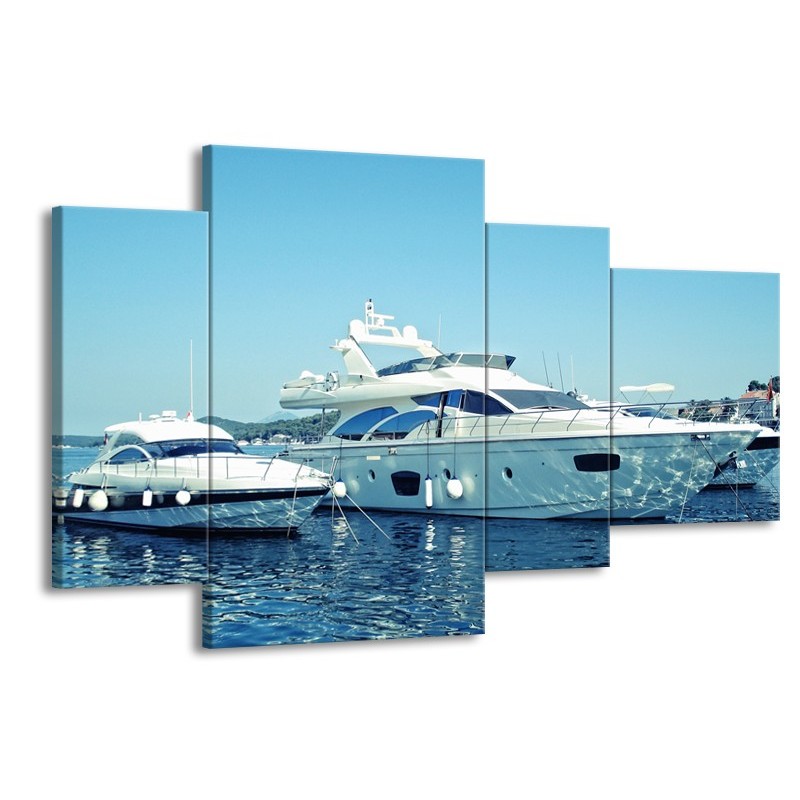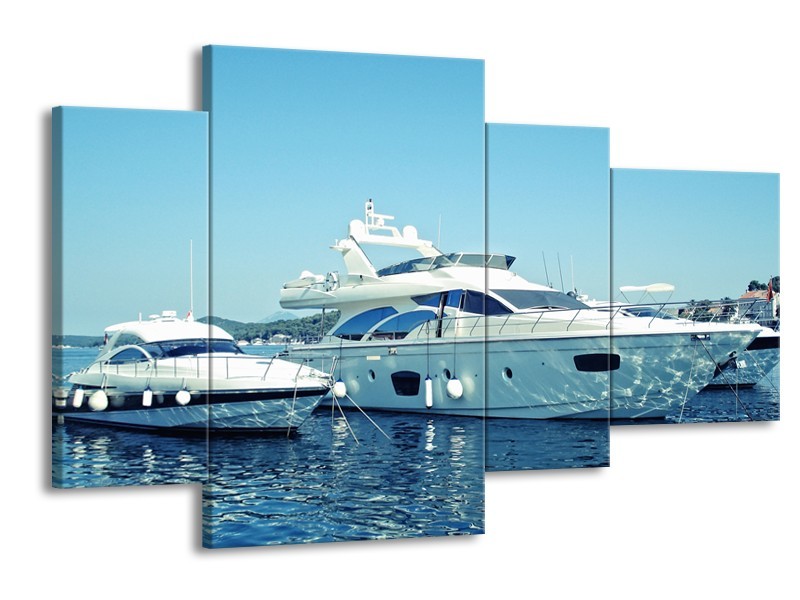 Glasschilderij Boot, Water | Blauw, Grijs, Wit | 120x75cm 4Luik