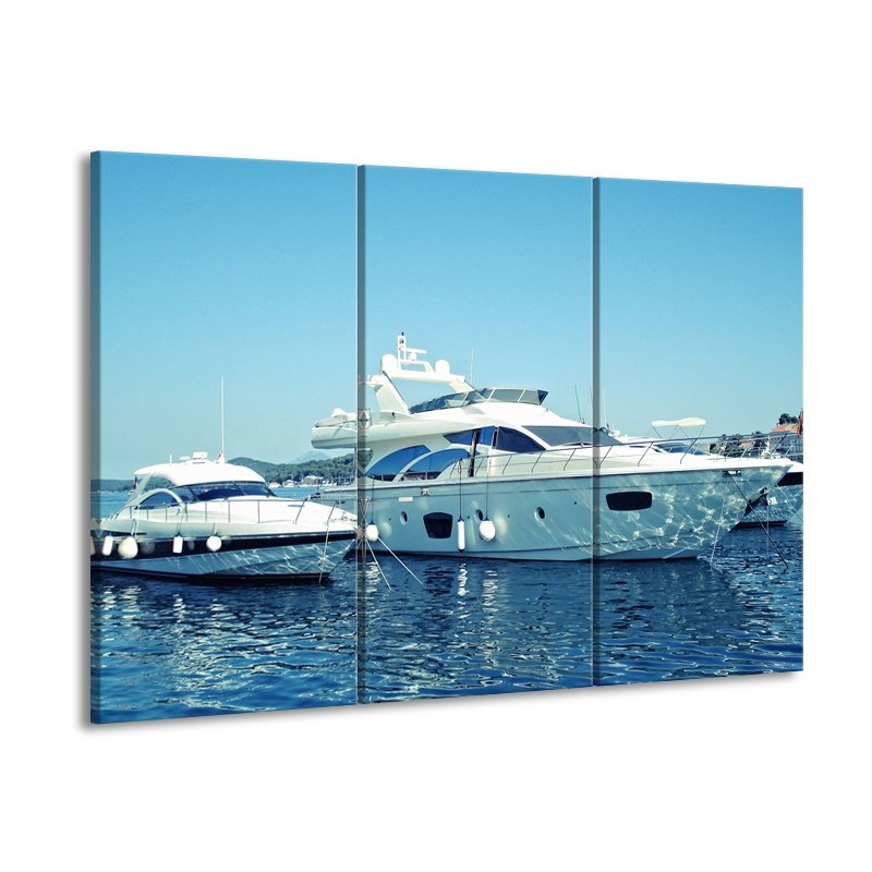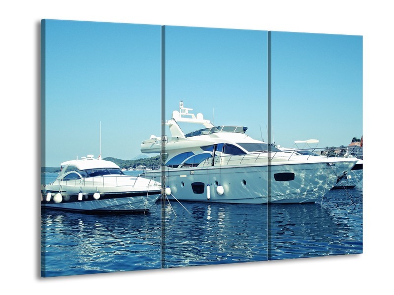 Glasschilderij Boot, Water | Blauw, Grijs, Wit | 60x90cm 3Luik