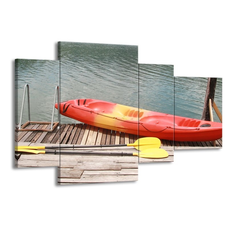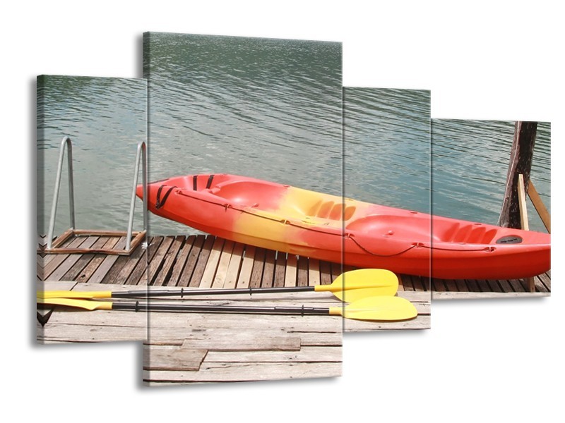 Glasschilderij Boot, Water | Geel, Oranje, Grijs | 120x75cm 4Luik