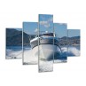 Glasschilderij Boot, Water | Grijs, Wit, Blauw | 100x70cm 5Luik