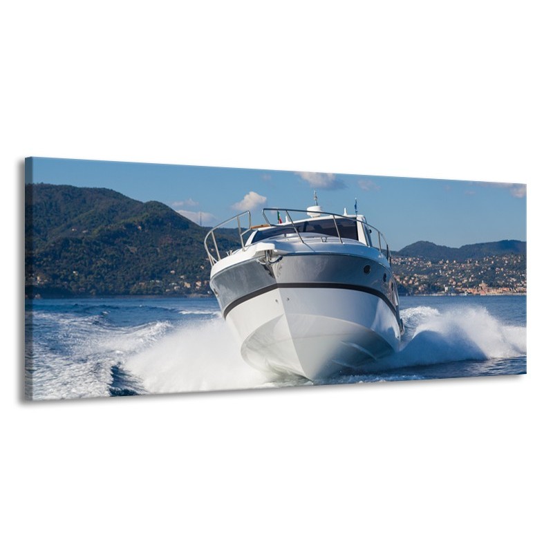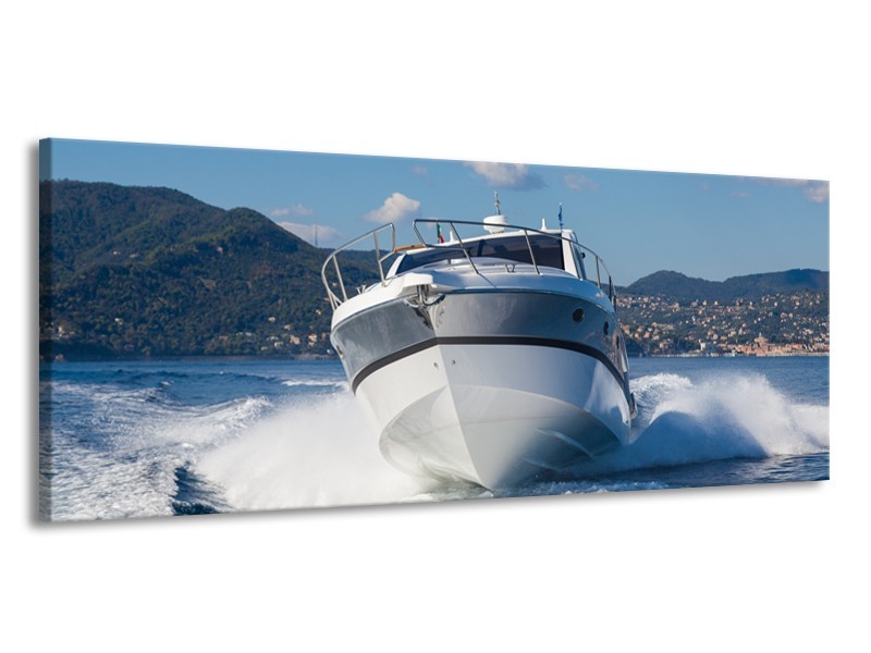 Glasschilderij Boot, Water | Grijs, Wit, Blauw | 145x58cm 1Luik