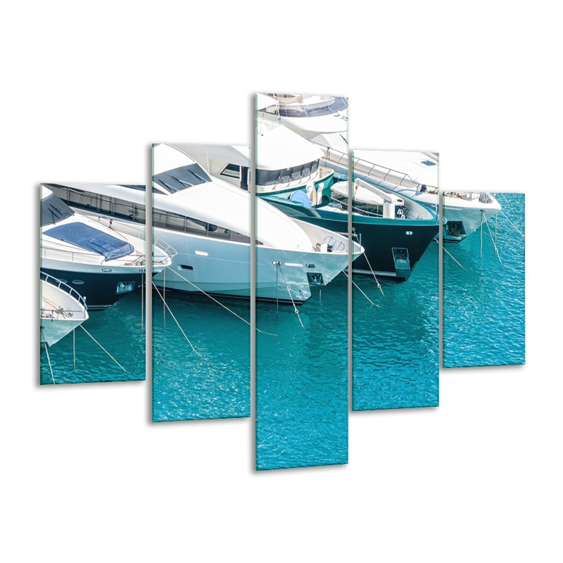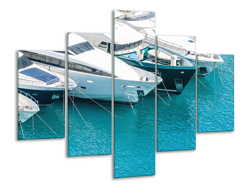 Glasschilderij Boot, Water | Wit, Turquoise | 100x70cm 5Luik