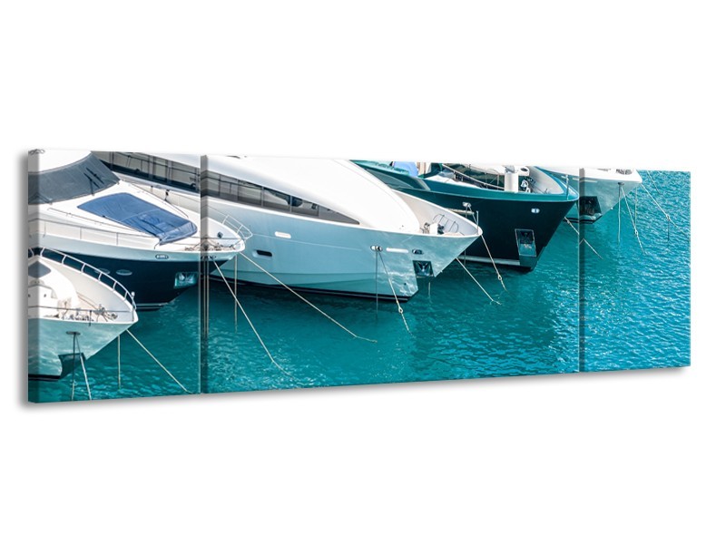 Glasschilderij Boot, Water | Wit, Turquoise | 170x50cm 3Luik