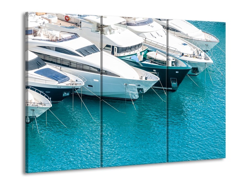 Glasschilderij Boot, Water | Wit, Turquoise | 60x90cm 3Luik