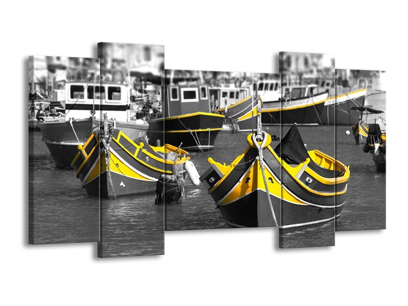 Glasschilderij Boot, Water | Zwart, Wit, Geel | 120x65cm 5Luik
