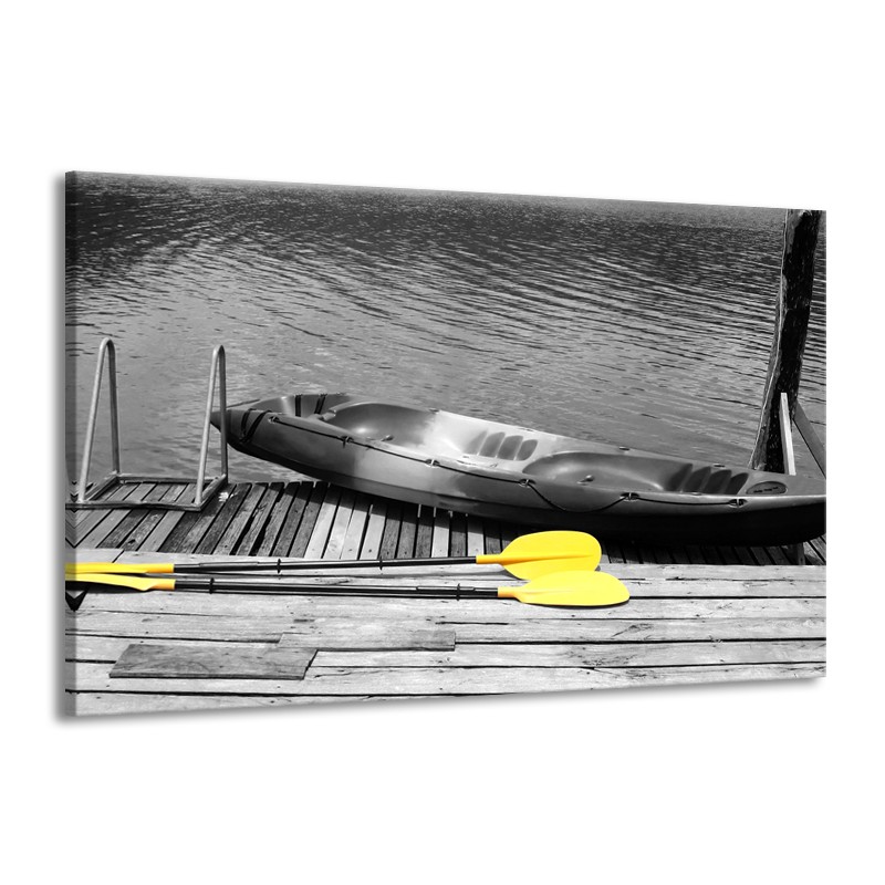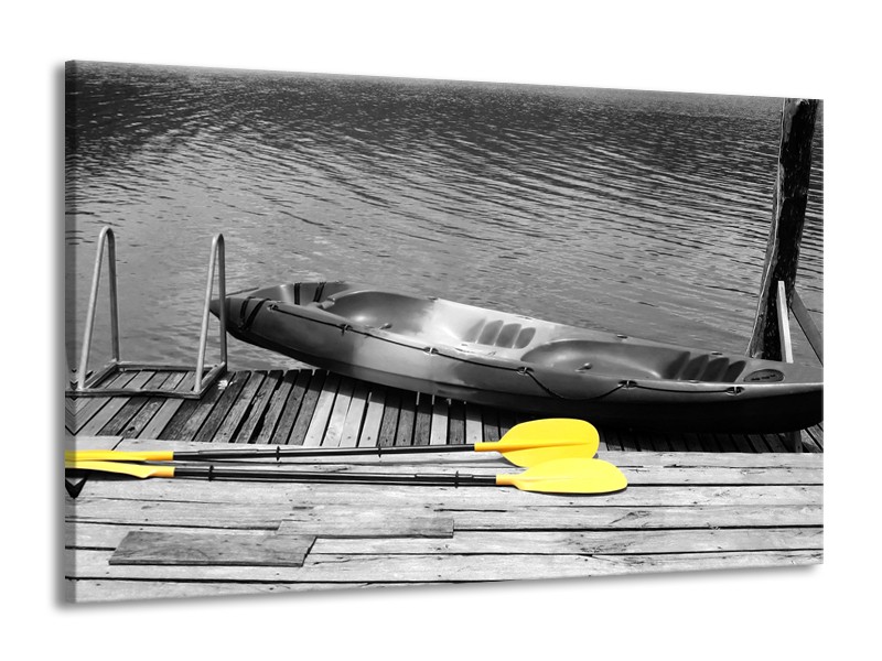 Glasschilderij Boot, Water | Zwart, Wit, Geel | 140x90cm 1Luik