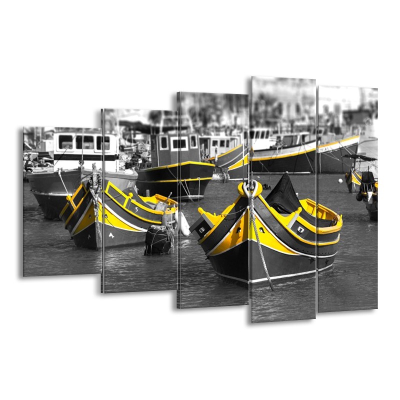 Glasschilderij Boot, Water | Zwart, Wit, Geel | 150x100cm 5Luik