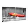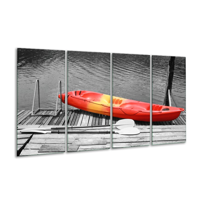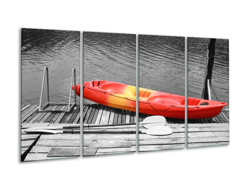 Glasschilderij Boot, Water | Zwart, Wit, Rood | 160x80cm 4Luik