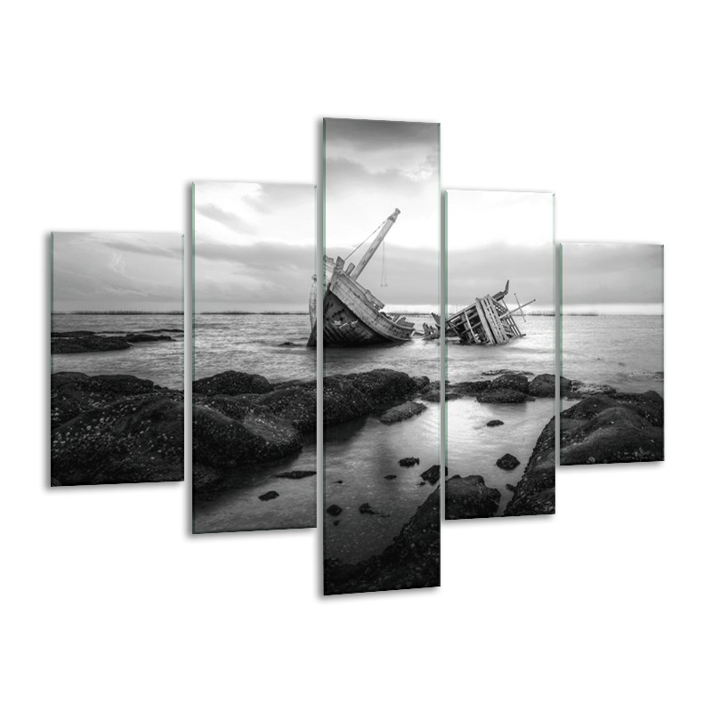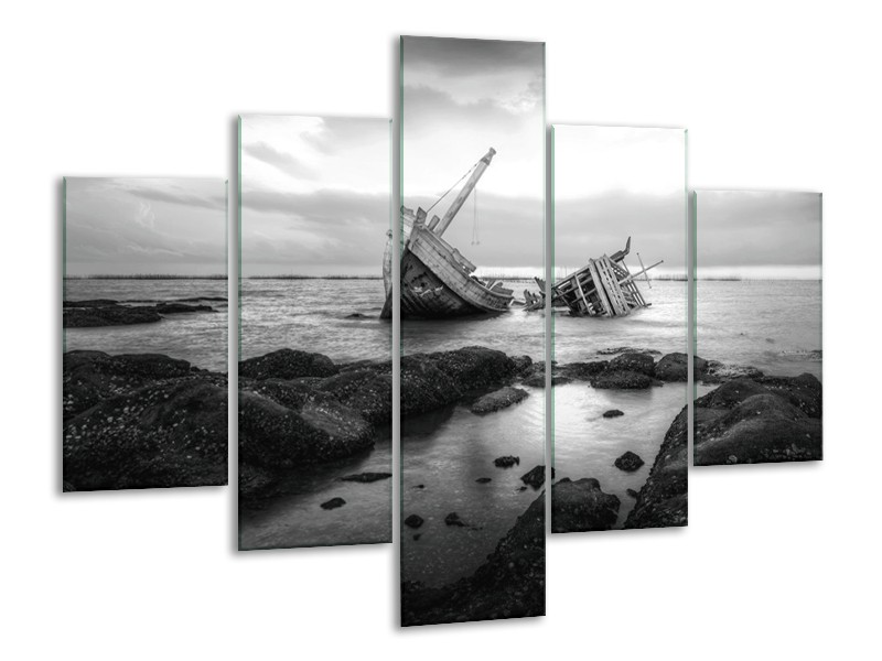 Glasschilderij Boot | Zwart, Grijs | 100x70cm 5Luik
