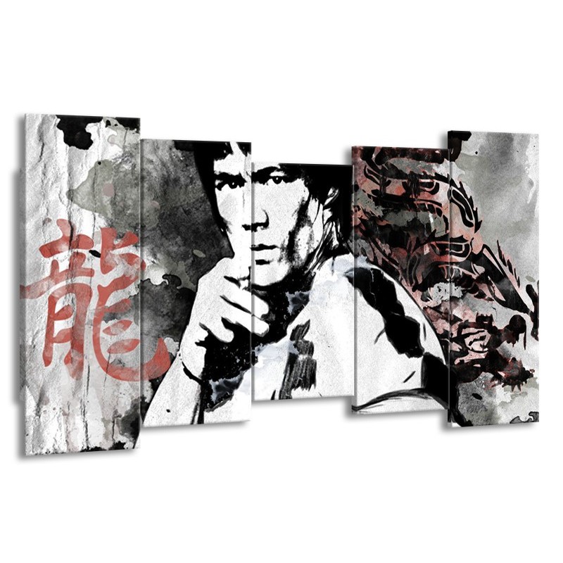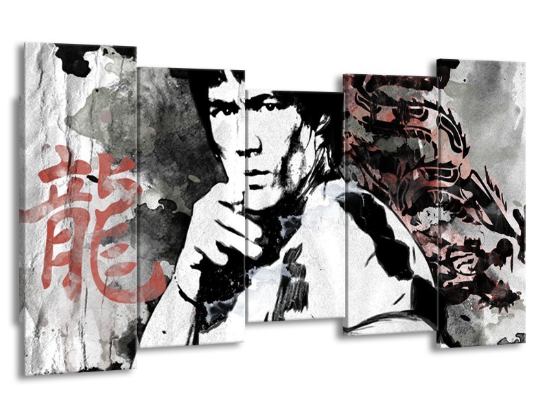 Glasschilderij Bruce Lee, Sport | Zwart, Wit, Rood | 150x80cm 5Luik
