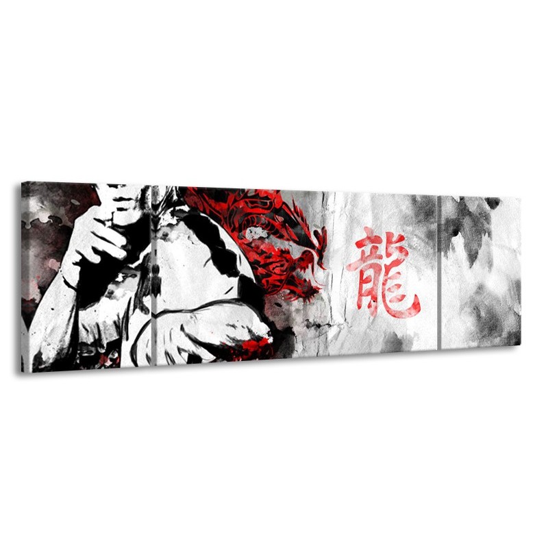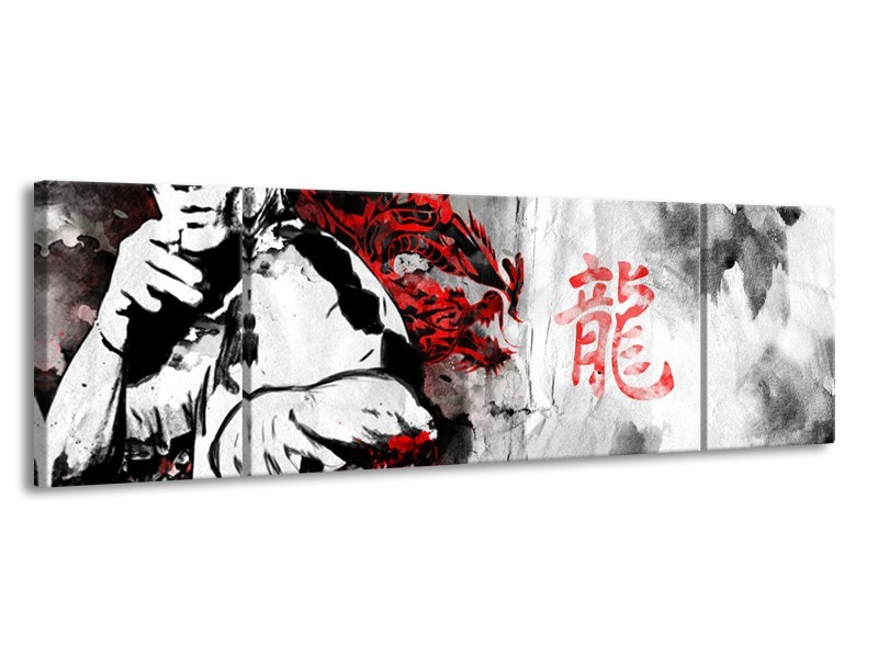 Glasschilderij Bruce Lee, Sport | Zwart, Wit, Rood | 170x50cm 3Luik