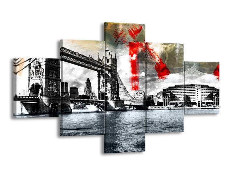 Glasschilderij Brug, Engeland | Grijs, Zwart, Wit | 125x70cm 5Luik