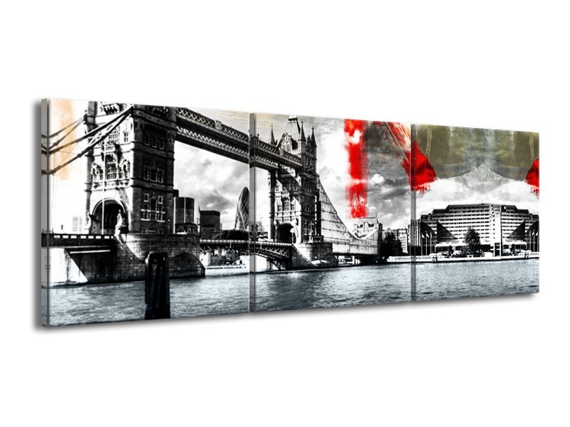 Glasschilderij Brug, Engeland | Grijs, Zwart, Wit | 150x50cm 3Luik