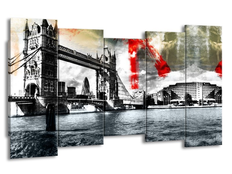 Glasschilderij Brug, Engeland | Grijs, Zwart, Wit | 150x80cm 5Luik