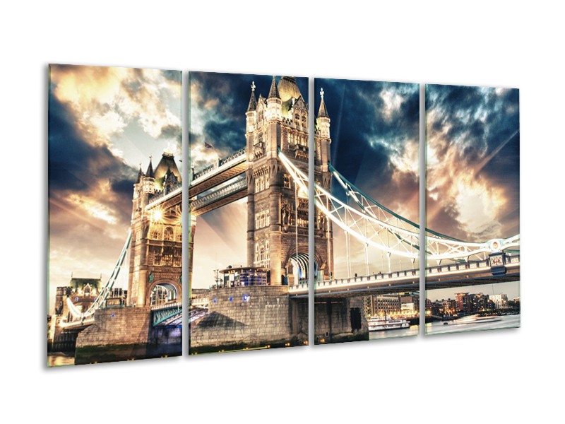 Glasschilderij Brug | Goud, Bruin, Blauw | 160x80cm 4Luik
