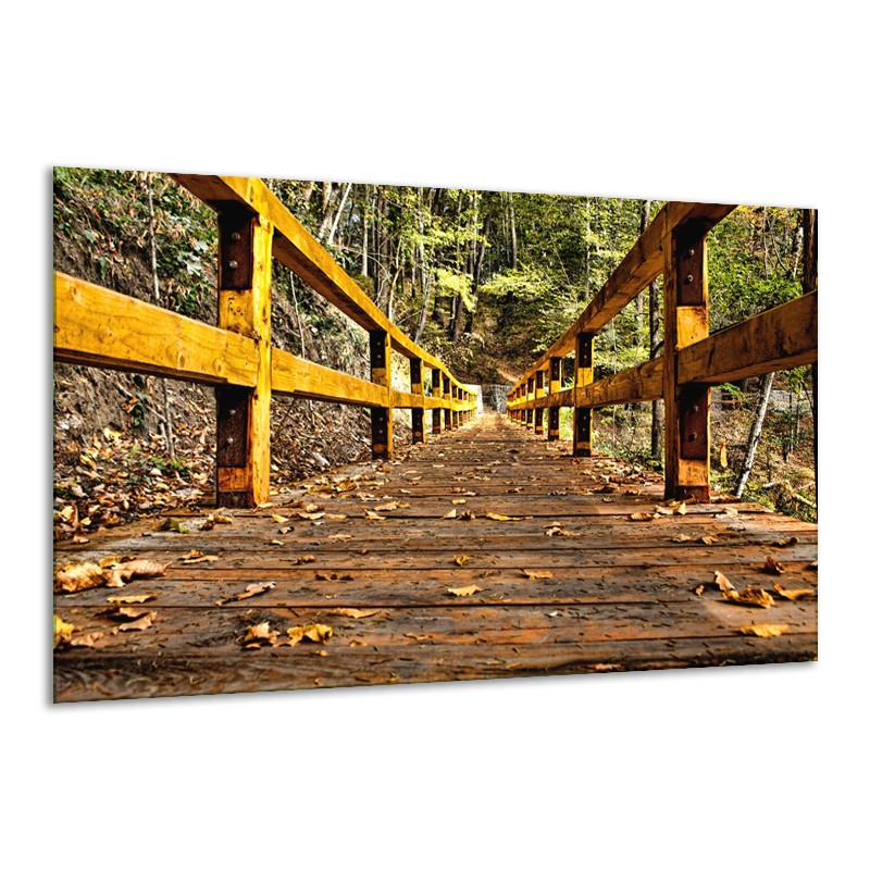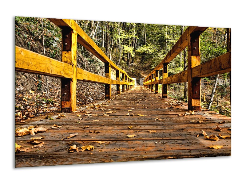 Glasschilderij Brug, Natuur | Bruin, Geel, Groen | 120x70cm 1Luik