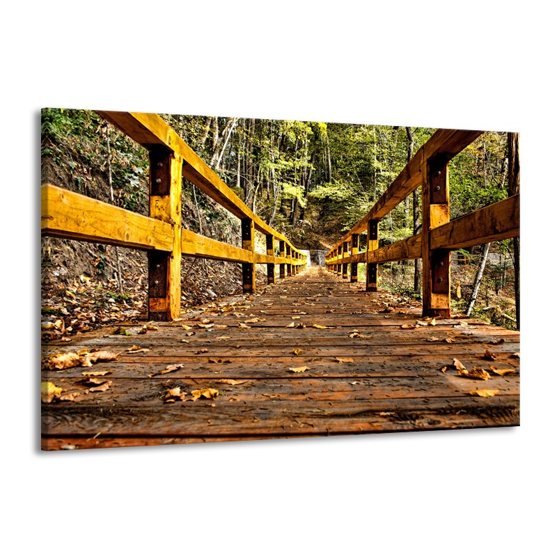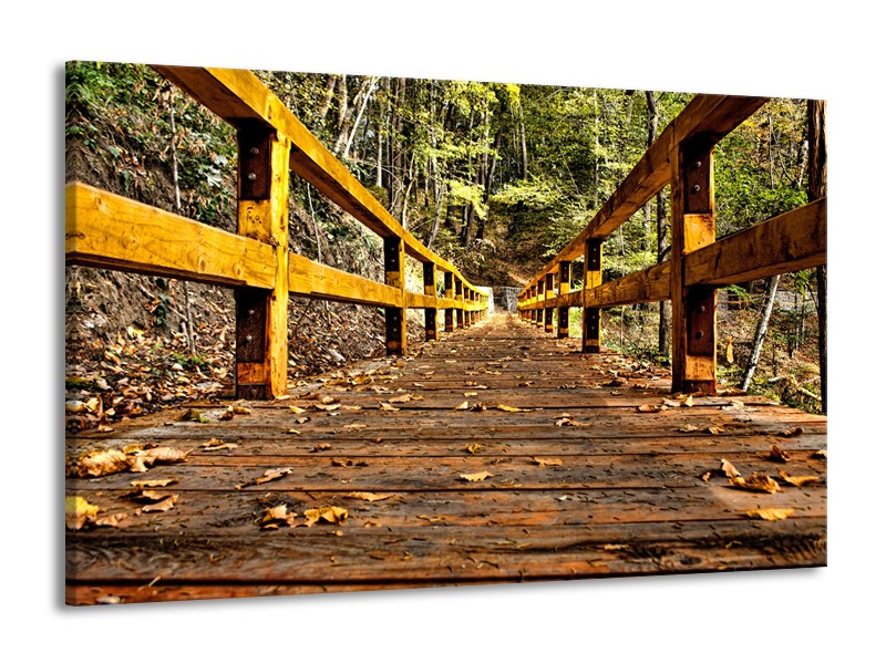 Glasschilderij Brug, Natuur | Bruin, Geel, Groen | 140x90cm 1Luik