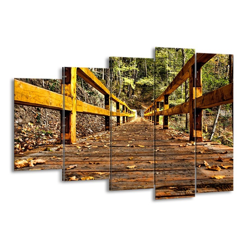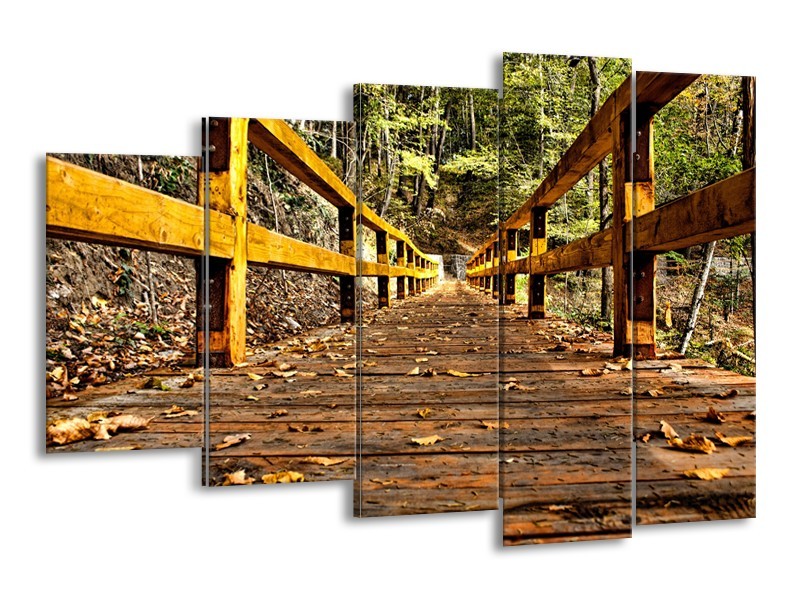 Glasschilderij Brug, Natuur | Bruin, Geel, Groen | 150x100cm 5Luik