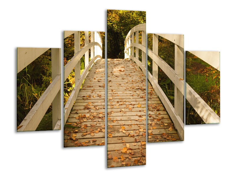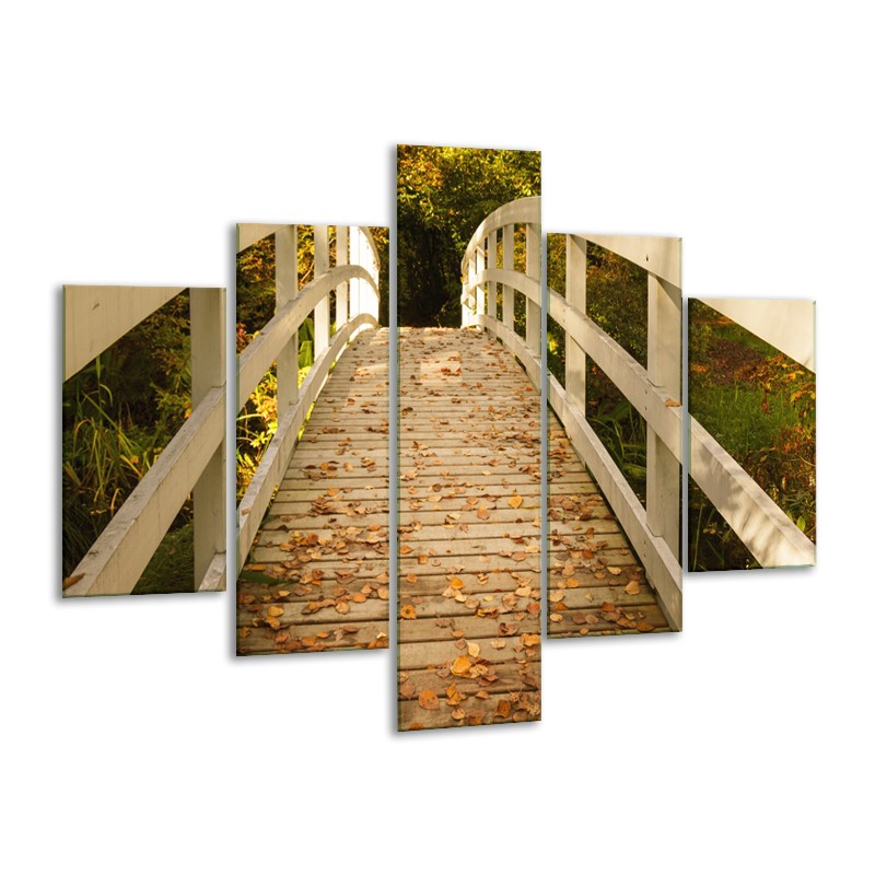 Glasschilderij Brug, Natuur | Bruin, Oranje, Crème | 100x70cm 5Luik