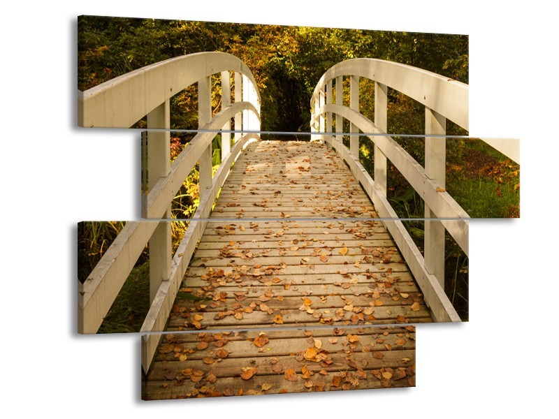 Glasschilderij Brug, Natuur | Bruin, Oranje, Crème | 115x85cm 4Luik