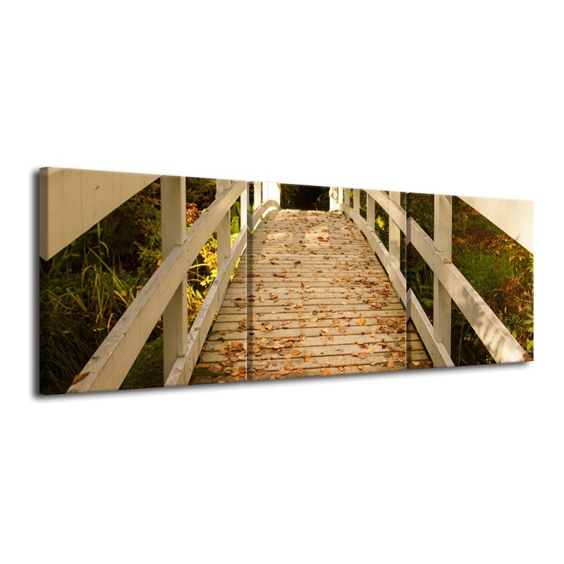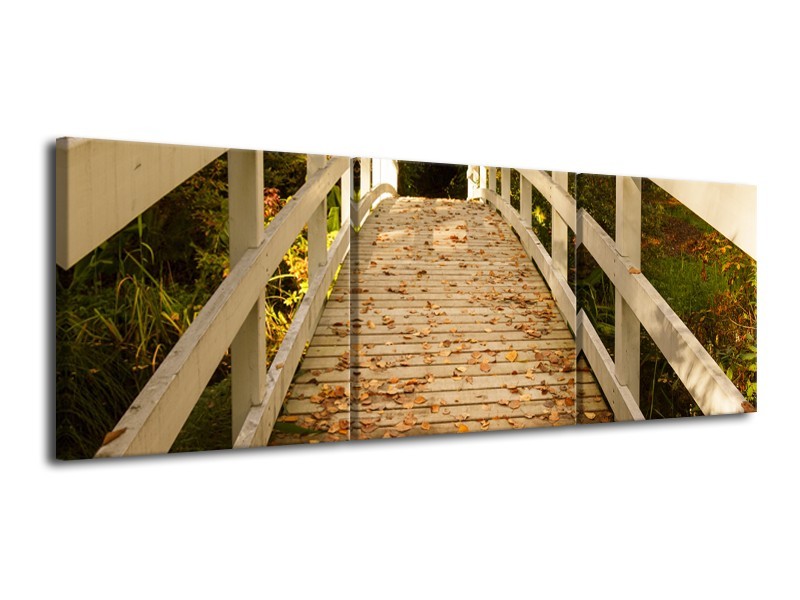 Glasschilderij Brug, Natuur | Bruin, Oranje, Crème | 120x40cm 3Luik