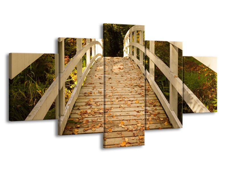 Glasschilderij Brug, Natuur | Bruin, Oranje, Crème | 150x80cm 5Luik