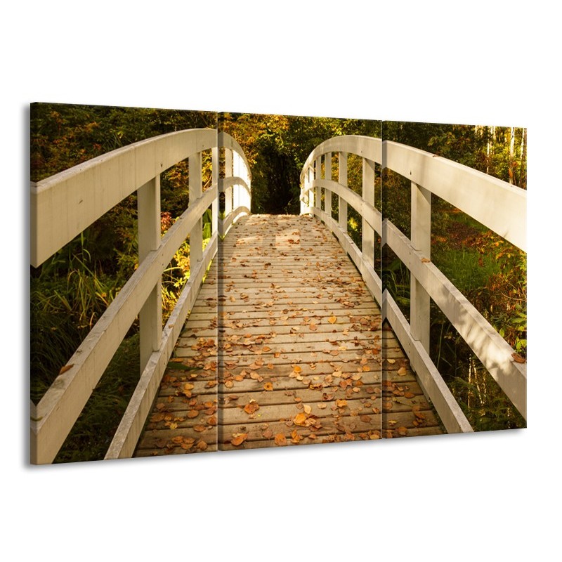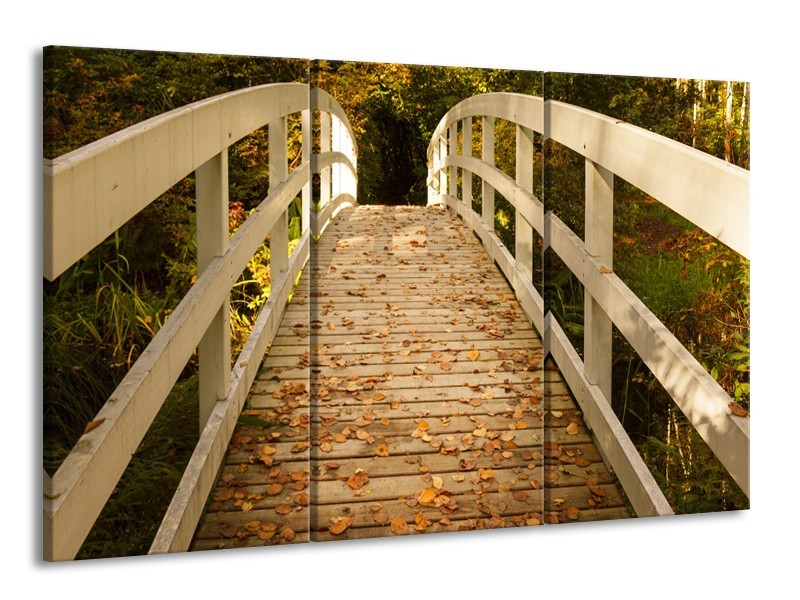 Glasschilderij Brug, Natuur | Bruin, Oranje, Crème | 165x100cm 3Luik