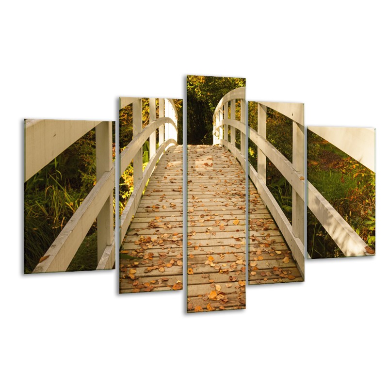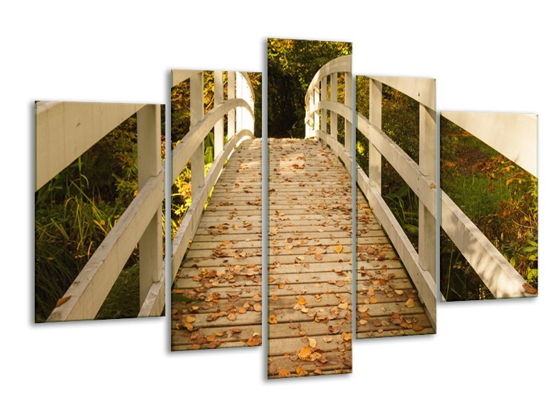 Glasschilderij Brug, Natuur | Bruin, Oranje, Crème | 170x100cm 5Luik