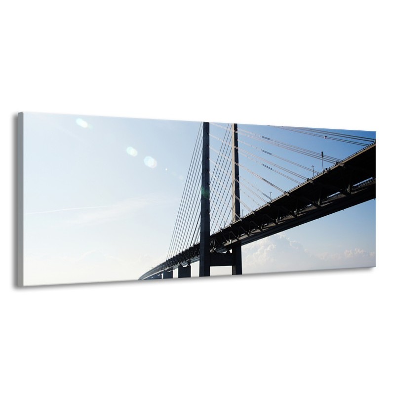 Glasschilderij Brug, Natuur | Grijs, Blauw, Zwart | 145x58cm 1Luik